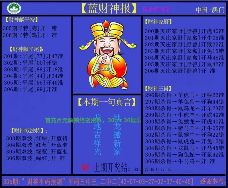 | 306期:两季中特→冬肖秋肖←开:牛17准 |